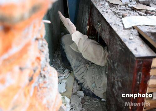 圖:被困廢墟72小時(shí)幸存者伸出等待救援的手