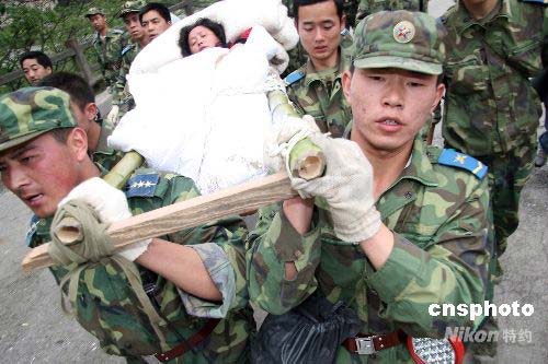 地震發(fā)生后,中國人民解放軍官兵迅速趕往四川各個災(zāi)區(qū)全力進行救助,被災(zāi)區(qū)人民親切的稱為“親人解放軍”。中新社發(fā) 黃家明 攝