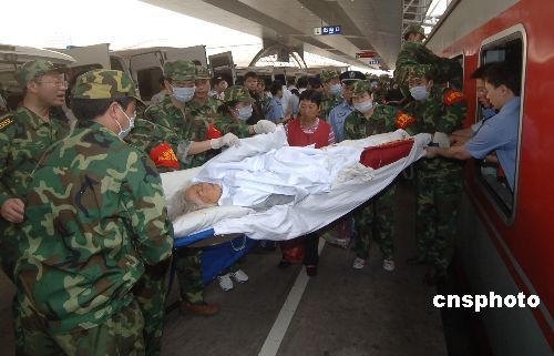 2008年5月19日,按照鐵道部的統(tǒng)一部署,成都鐵路局開(kāi)行首趟運(yùn)送地震災(zāi)區(qū)受傷群眾專列,19日1O:20從綿陽(yáng)發(fā)車(chē),當(dāng)日16:57到達(dá)重慶北站。運(yùn)送了206名地震受傷群眾及家屬前往重慶接受治療。該次專列專列車(chē)次為57005/6/5次路用傷員列車(chē),編組19輛,全部為25G空調(diào)硬臥車(chē)。其中硬臥15輛并配備餐車(chē)及行李車(chē)!