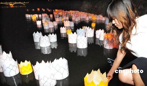 組圖:洛陽龍門石窟前放河燈悼念地震遇難者(2)