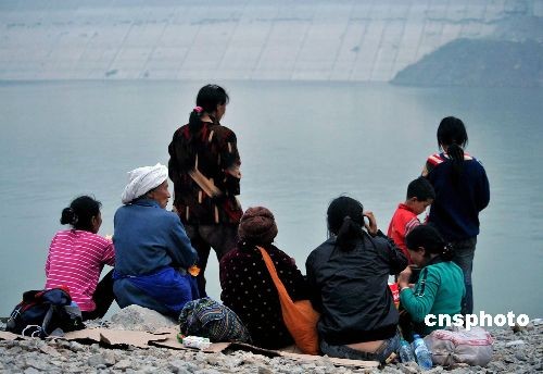 5月16日傍晚,四川都江堰紫坪鋪水庫(kù)臨時(shí)碼頭邊,已經(jīng)被解放軍和武警官兵解救的村民,在江邊遙望著遠(yuǎn)方,企盼著他們尚在災(zāi)區(qū)的親人。 吳蘇琳 攝