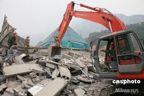 四川北川大型機(jī)械挖掘國家金庫庫款。中新社發(fā) 陳雙維 攝