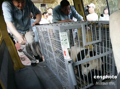 八只來自四川災(zāi)區(qū)的奧運大熊貓平安抵京 (2)