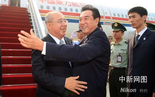 圖:中國國民黨主席吳伯雄率團(tuán)抵達(dá)南京