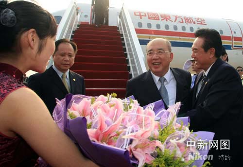 中國國民黨主席吳伯雄率團(tuán)抵達(dá)南京 陳云林接機(jī)