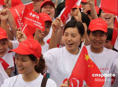 圖:奧運(yùn)火炬南京傳遞 群眾夾道歡迎(2)