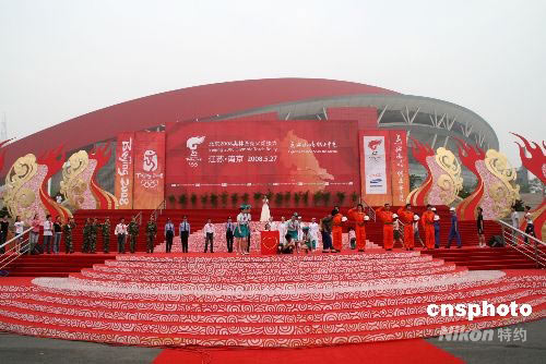 圖:圣火南京傳遞 藝術(shù)團為抗震救災(zāi)表演