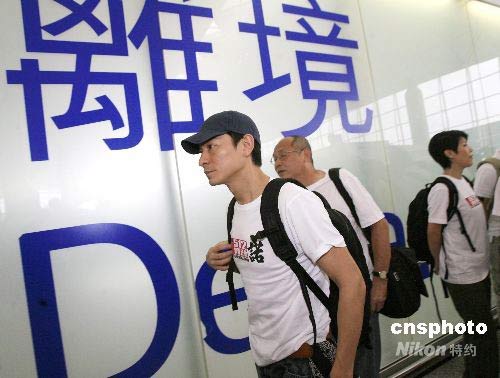 五月二十八日,出發(fā)去四川地震災(zāi)區(qū)探訪的香港演藝界“5·12關(guān)愛行動”首批藝人在香港國際機場接受媒體采訪。劉德華、鄭秀文、容祖兒等十多位藝人將在四川地震災(zāi)區(qū)慰問四天,將服從當?shù)匕才湃ヌ酵麨?zāi)區(qū)孤兒并參加三十日四川的賑災(zāi)演出等工作。中新社發(fā) 王麗南 攝