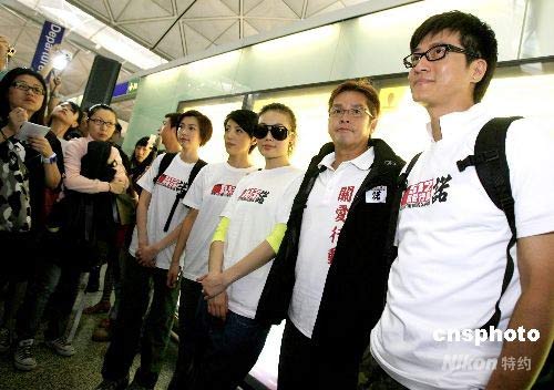 譚詠麟為啟程赴四川地震災(zāi)區(qū)探望的香港藝人送行