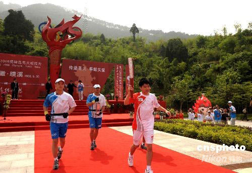 圖:奧運(yùn)圣火在安徽績溪傳遞