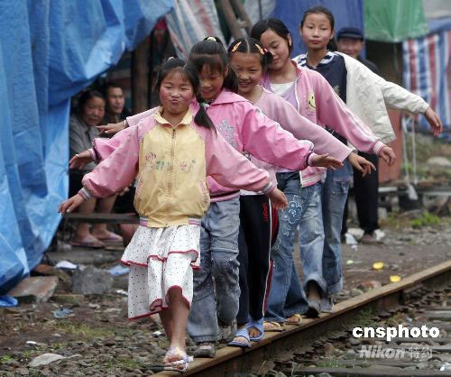 組圖:地震災區(qū)孩子漸露童真笑臉(2)