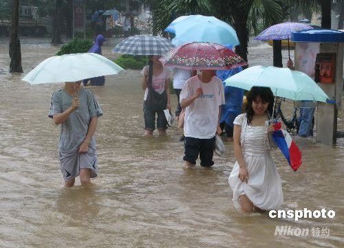 廣西柳州暴雨如注 市民從容面對(duì)內(nèi)澇