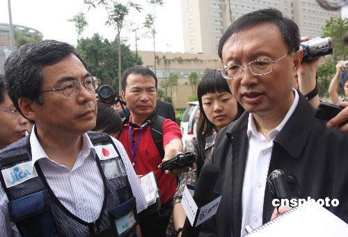 5月30日,中國外交部部長楊潔篪前往四川大學(xué)華西醫(yī)院看望日本醫(yī)療隊(duì),高度贊揚(yáng)了他們對地震災(zāi)區(qū)民眾的關(guān)心和國際人道主義精神。中新社發(fā) 黃榮 攝