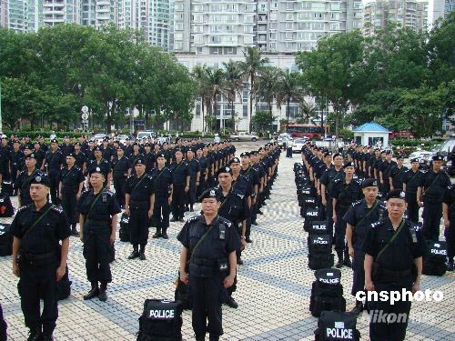 圖為海口特警隊(duì)員整裝待發(fā)。中新社發(fā) 付美斌 攝