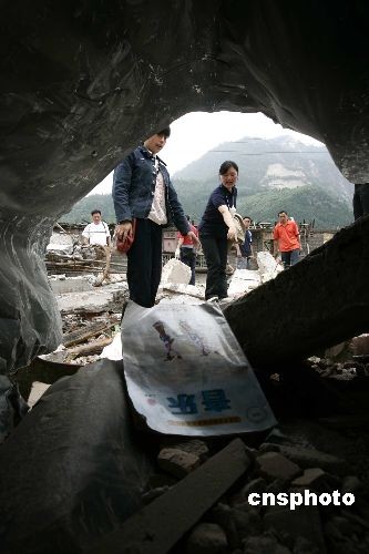 家長在學(xué)校廢墟中尋找遇難孩子的遺物