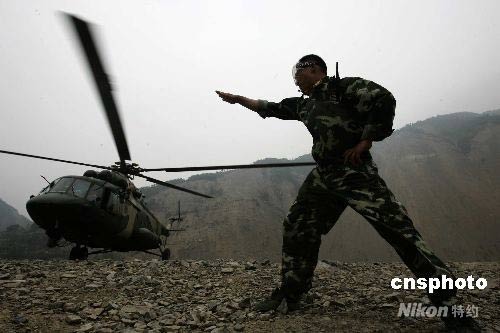 部隊官兵從唐家山堰塞湖堤壩壩頂陸續(xù)撤退