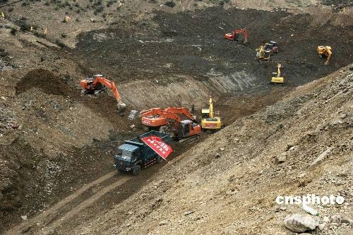 5月31日,唐家山堰塞湖瀉流槽已基本挖通,目前堰塞湖的水位離堰塞湖槽的出水有7米的距離,將采取自然泄洪的方法分洪,不再進(jìn)行爆破,分洪的時(shí)間要根據(jù)上游的來水量確定,大概時(shí)間在6月1日到6月5日之間。中新社發(fā) 杜洋 攝