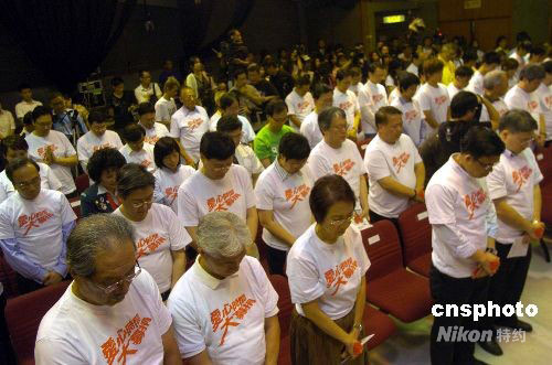 出席義工招募計(jì)劃的人士在會(huì)前向四川地震的遇難者默哀。