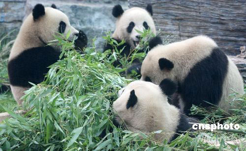2008年6月5日,北京動(dòng)物園熊貓新館正式開(kāi)放。從四川臥龍來(lái)到北京的八只熊貓當(dāng)日在新館正式亮相,吸引了許多市民前來(lái)觀看。中新社發(fā) 吳芒子 攝