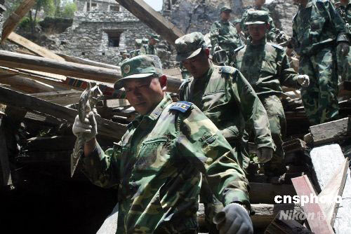 圖為成都軍區(qū)空軍雷達(dá)某團(tuán)團(tuán)長(zhǎng)張肇榮帶領(lǐng)官兵護(hù)送罕見(jiàn)文物下山。中新社發(fā) 張子影 攝