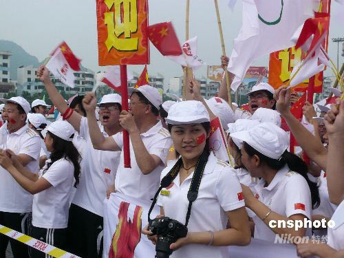 圖:桂林民眾熱情歡迎奧運(yùn)圣火