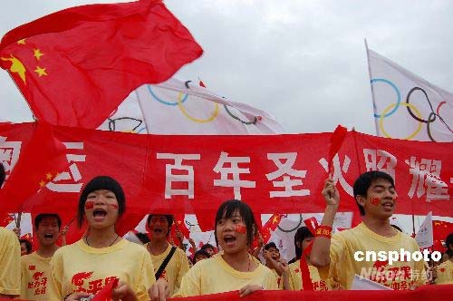 圖:革命老區(qū)廣西百色熱情迎接奧運圣火 (4)