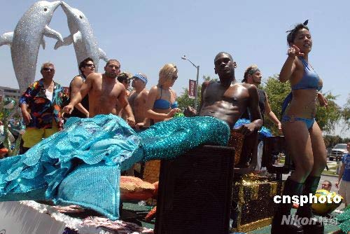 當(dāng)?shù)貢r間六月八日(周日),洛杉磯數(shù)千名同性戀者及其支持者在西好萊塢的圣塔莫妮卡大道上參加第三十八屆“同性戀自豪大游行”,沿途有十幾萬民眾觀看游行。美國加州高等法院上個月通過了同性戀婚姻合法化的最終決定,從而使加州成為美國第二個允許同性戀伴侶結(jié)婚的州。中新社發(fā) 張煒 攝