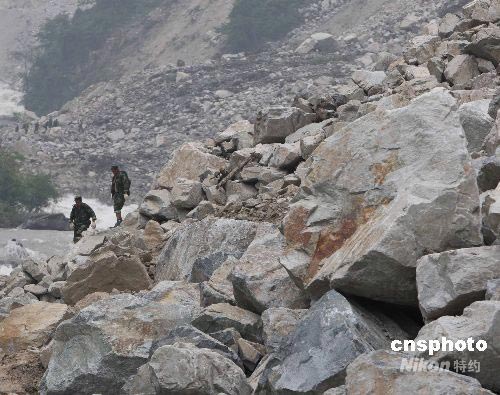 參加搜救的四川省軍區(qū)部隊繼續(xù)增援山高林密非常險峻的失事地點,準備運送遺體。中新社發(fā) 賈國榮 攝