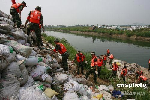 圖:四川遂寧緊急筑壩截流保衛(wèi)飲用水源(2)