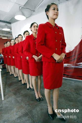 圖:15位準(zhǔn)空姐北京演練奧運頒獎儀式 (2)