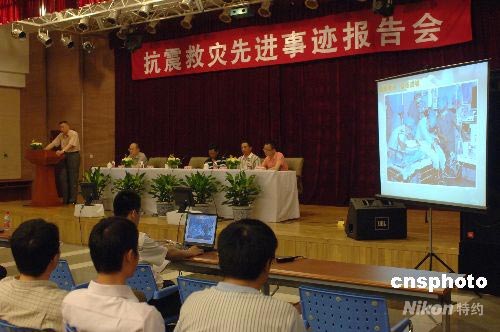 圖為僑辦系統(tǒng)抗震救災(zāi)先進(jìn)事跡報(bào)告會(huì)的現(xiàn)場(chǎng)。中新社發(fā) 鄒憲 攝