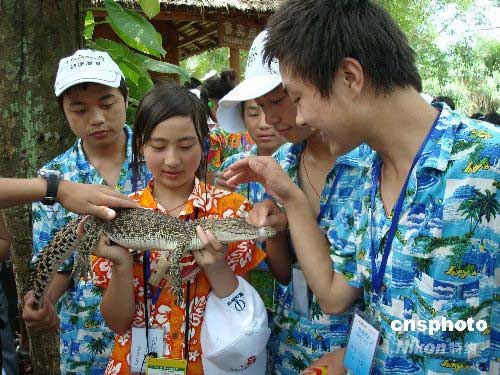 6月14日,89位震區(qū)失親兒童來(lái)到海南熱帶野生動(dòng)植物園參觀游覽。據(jù)了解,此為孩子們15天心靈康復(fù)之旅中的最后一個(gè)旅游景點(diǎn),他們將于16日上午搭乘南方航空的愛心專機(jī)返程。中新社發(fā) 陳少婷 攝