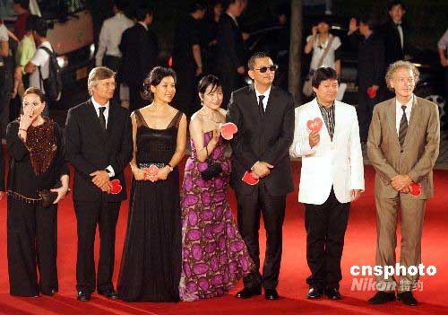 圖為金爵獎國際評委亮相,他們是德國制片人烏里希、中國導演霍建起、中國香港導演王家衛(wèi)、日本明星桃井熏、著名演員陳沖、丹麥導演比爾和以色列女演員吉拉(右起)。中新社發(fā) 潘索菲 攝