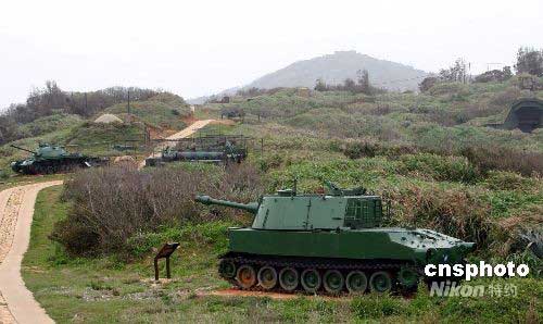 “戰(zhàn)爭與和平紀念公園”位于馬祖北竿后澳村后方大澳山,是由軍方撥出廢棄的大澳山軍事用地,由馬祖風景區(qū)管理處從2004年起投入上億元新臺幣興建。山道兩側放置有軍方除役的武器:自行火炮、迫炮戰(zhàn)、坦克等,引領游客體驗與感受冷戰(zhàn)時期東太平洋防線前線戰(zhàn)地的氛圍。中新社發(fā) 耿軍 攝