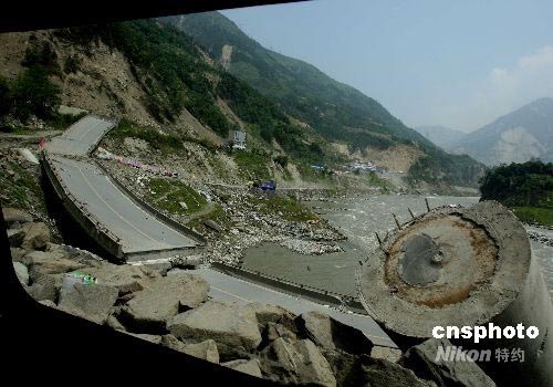四川汶川大地震嚴(yán)重毀壞映秀鎮(zhèn)的道路,修復(fù)工程非常艱巨。隨著搜尋失事直升機(jī)任務(wù)的完成,各路大軍上萬人六月中旬再度沿江開進(jìn)這里,準(zhǔn)備清理防疫和重建工作。中新社發(fā) 賈國(guó)榮 攝