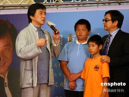 圖:成龍亮相臺(tái)北為貧苦學(xué)童募集善款