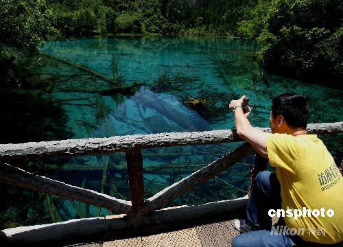 6月18日,一位香港心理教育志愿者完成災(zāi)區(qū)服務(wù)任務(wù)后,路過震后九寨溝,拍攝分外寧靜的美景。四川汶川大地震絲毫未損四百公里外的九寨溝,風景區(qū)旅游設(shè)施完善如初,六月底前將部分恢復(fù)旅行社組團旅游,游客主要通過航空和甘肅省以及四川省的繞行公路進出。地震以來,這里每天都接待一些散客。中新社發(fā) 賈國榮 攝