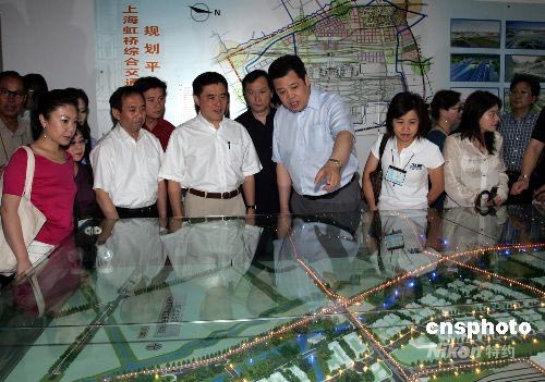 6月24日,臺北市長郝龍斌專程考察上海虹橋綜合交通樞紐工程,意在建立臺北松山機場至上海虹橋機場新直航點,共同形成“兩小時經濟圈”。中新社發(fā) 潘索菲 攝