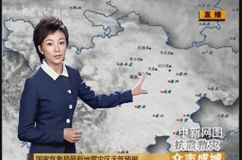 王藍一在《眾志成城 抗震救災》直播中播報天氣預報。