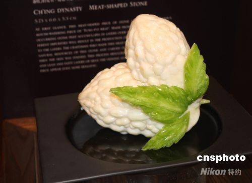“白玉錦荔枝”原擺放在北京故宮乾清宮東暖閣,原件是仿雕苦瓜。主廚選用臺(tái)灣精致農(nóng)業(yè)的代表產(chǎn)品之一的“蘋(píng)果苦瓜”做食材,這種苦瓜外表白胖圓潤(rùn),其造型與故宮文物原件十分相似,拌以沙拉醬,味甘甜。中新社發(fā) 耿軍 攝