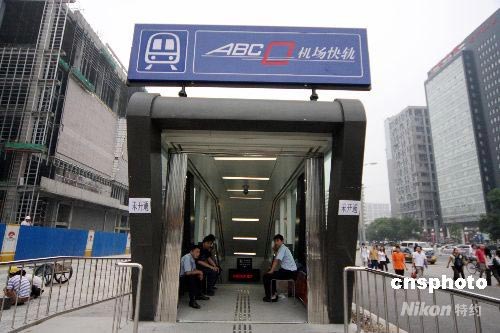 6月26日,北京機(jī)場(chǎng)快軌東直門站口。近日,北京機(jī)場(chǎng)快軌站口拆去了圍擋,亮相東直門街頭。中新社發(fā) 吳芒子 攝