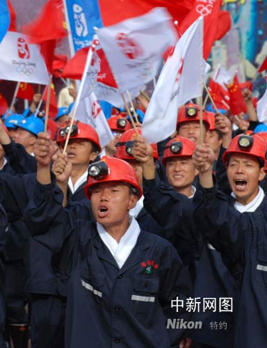 大同礦藏資源豐富,素有“煤都”之稱,是我國重要的優(yōu)質(zhì)動力煤生產(chǎn)基地。圖為煤礦工人來到火炬?zhèn)鬟f現(xiàn)場,為奧運(yùn)加油喝彩。張雷杰 攝
