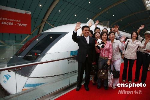 6月27日下午,臺(tái)北市長(zhǎng)郝龍斌在上海乘磁浮列車,赴浦東國(guó)際機(jī)場(chǎng),搭乘東航MU507航班返臺(tái),結(jié)束在上海為期5天的訪問。中新社發(fā) 潘索菲 攝