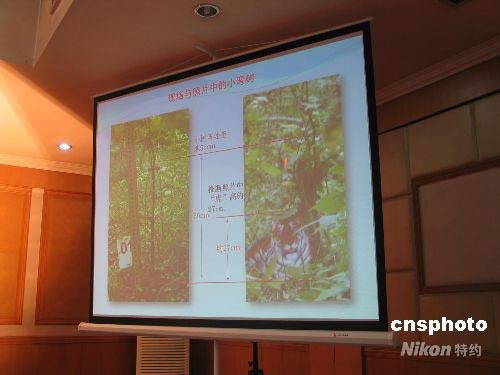 圖為根據(jù)周正龍照片現(xiàn)場重建后的圖片顯示,該所謂“華南虎”體高僅27厘米。中新社發(fā) 趙景榮 攝