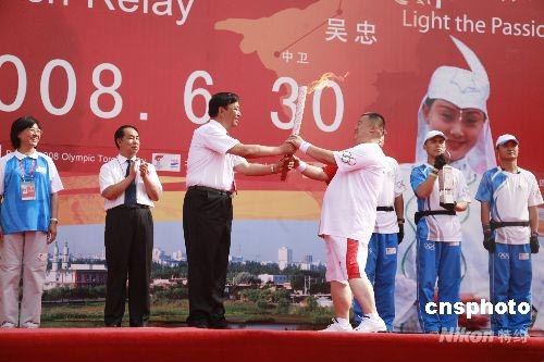 6月30日,奧運火炬在中國回族之鄉(xiāng)寧夏吳忠傳遞。吳忠是馳名中外的“中國回族之鄉(xiāng)”,位于黃河上游,地處寧夏平原腹地。全市總?cè)丝?30.8萬人,其中回族65.6萬人,占總?cè)丝诘?0.2%,是我國主要的回族聚居區(qū)之一,也是全國地級市中回族人口比例最高的市。 中新社發(fā) 蘆河 攝