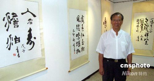 6月29日,臺(tái)灣澎湖本地書法家藍(lán)重吉的書法展揭幕,為迎接7月4日的大陸旅游首發(fā)團(tuán),屆時(shí)大陸旅游團(tuán)將攜帶八十多幅作品加入此次展出,兩地書畫同好將齊聚一堂,交換心得。中新社發(fā) CNA 攝