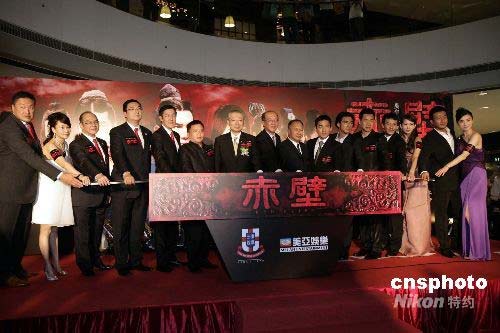 六月三十日晚,由吳宇森導(dǎo)演的電影《赤壁》在香港舉行慈善首映,特區(qū)教育局局長(zhǎng)孫明揚(yáng)、東華三院董事局成員及美亞娛樂(lè)咨詢(xún)集團(tuán)公司代表、劇中主要演員張豐毅、金城武、張震、梁朝偉、林志玲、胡軍、宋佳等出席。中新社發(fā) 王麗南 攝