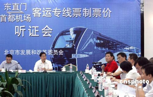 7月2日,首都機(jī)場客運專線票制票價方案聽證會在京舉行。此次聽證的主要內(nèi)容是:采取單一票制,票價為每人次25元或30元。此次軌道交通路網(wǎng)票制票價方案聽證會的代表共有25名,并有10位市民旁聽。據(jù)悉,主要服務(wù)于航空旅客的首都機(jī)場軌道客運專線將于2008年7月上旬開通試運行。中新社發(fā) 杜燕 攝