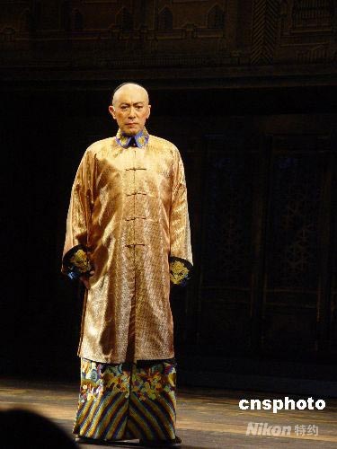 圖為在話劇中扮演光緒皇帝的香港著名舞臺劇導(dǎo)演毛俊輝。他上次登臺演出的就是1998年的《德齡與慈禧》,這次是十年后再度出演劇中“光緒皇帝”。中新社發(fā) 應(yīng)妮 攝