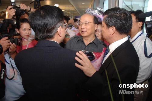 7月4日10時(shí)50分左右,臺(tái)灣臺(tái)中市長(zhǎng)胡志強(qiáng)一行乘華信航班抵達(dá)廈門(mén),受到熱烈歡迎,感言此行“廈門(mén)至臺(tái)中通航、臺(tái)中地區(qū)四位縣市長(zhǎng)集體參訪廈門(mén)”等諸多第一。中新社發(fā) 鄭祚聲 攝